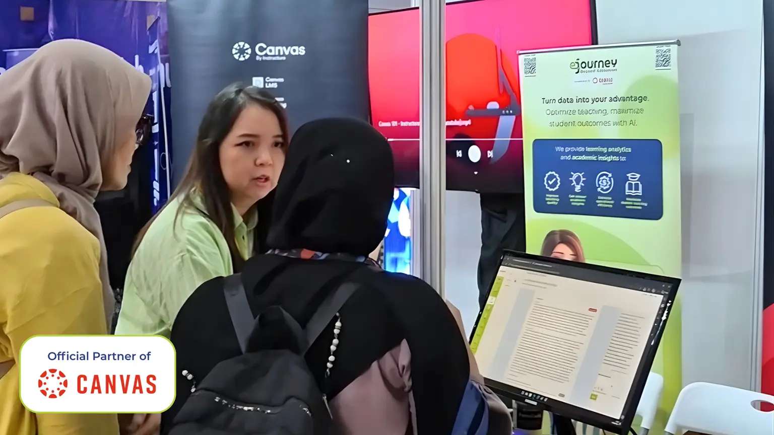 Melihat situasi ini, kami memutuskan untuk mengambil pendekatan yang sangat berbeda dalam JAMS Expo & Forum 2026. Sebagai mitra resmi Canvas by Instructure di Indonesia, eJourney membawa sebuah ekosistem belajar dengan standar kampus kelas dunia—Harvard University, University of Washington, UC Berkeley, dll—tanpa perlu mengatur sebuah ekosistem dari dasar atau mengeluarkan biaya yang besar. Dengan demikian, eJourney dapat membantu proses belajar-mengajar dengan solusi LMS yang tidak hanya siap digunakan, tetapi juga dirancang khusus untuk melengkapi sebuah ekosistem belajar-mengajar secara menyeluruh: dari analitik, pembelajaran interaktif, hingga penilaian otomatis melalui fitur AI Assessment & Roleplay.